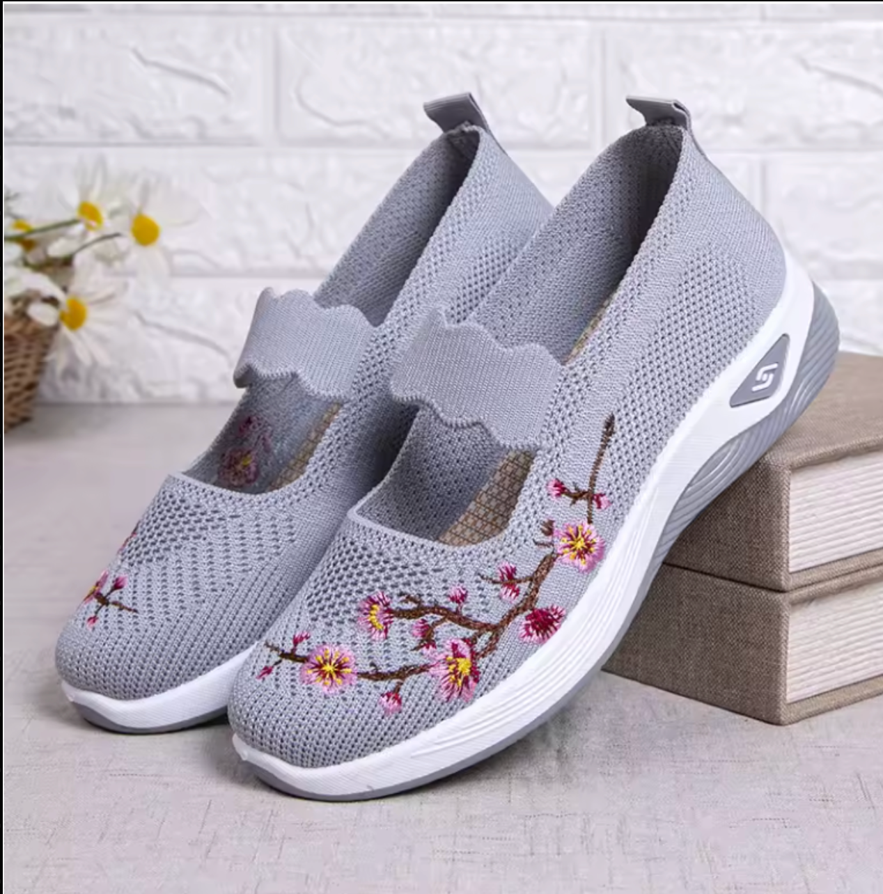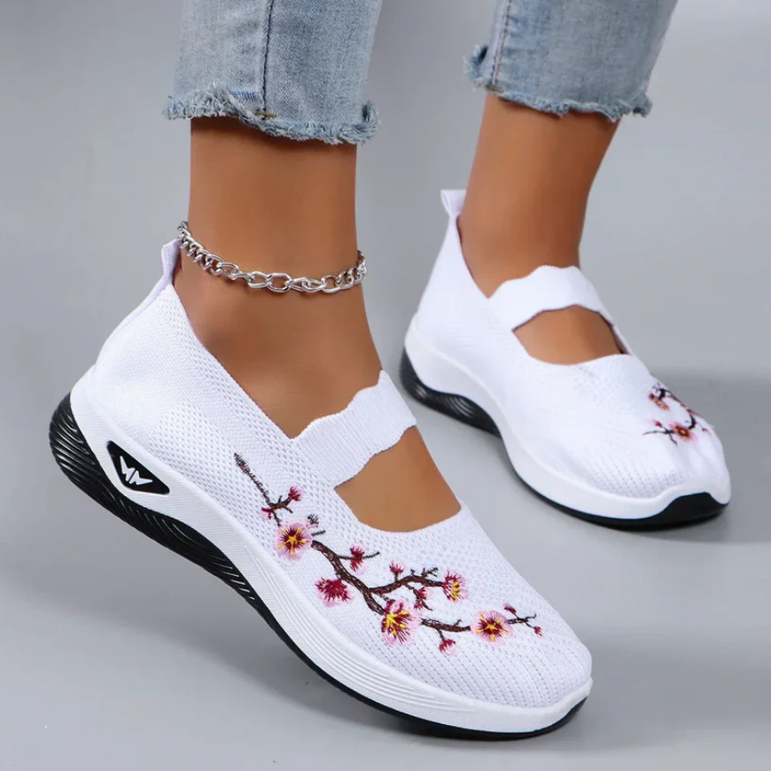 Diese eleganten Slip-On-Sneaker sind die perfekte Mischung aus Komfort und Stil. Das leichte Strickmaterial schmiegt sich angenehm an deinen Fuß, während die weiche Sohle jeden Schritt sanft abfedert. Zarte Stickereien verleihen dem Schuh einen frischen Sommer-Look. Ideal für Spaziergänge, Alltag und entspannte Momente – ganz ohne Druckstellen.